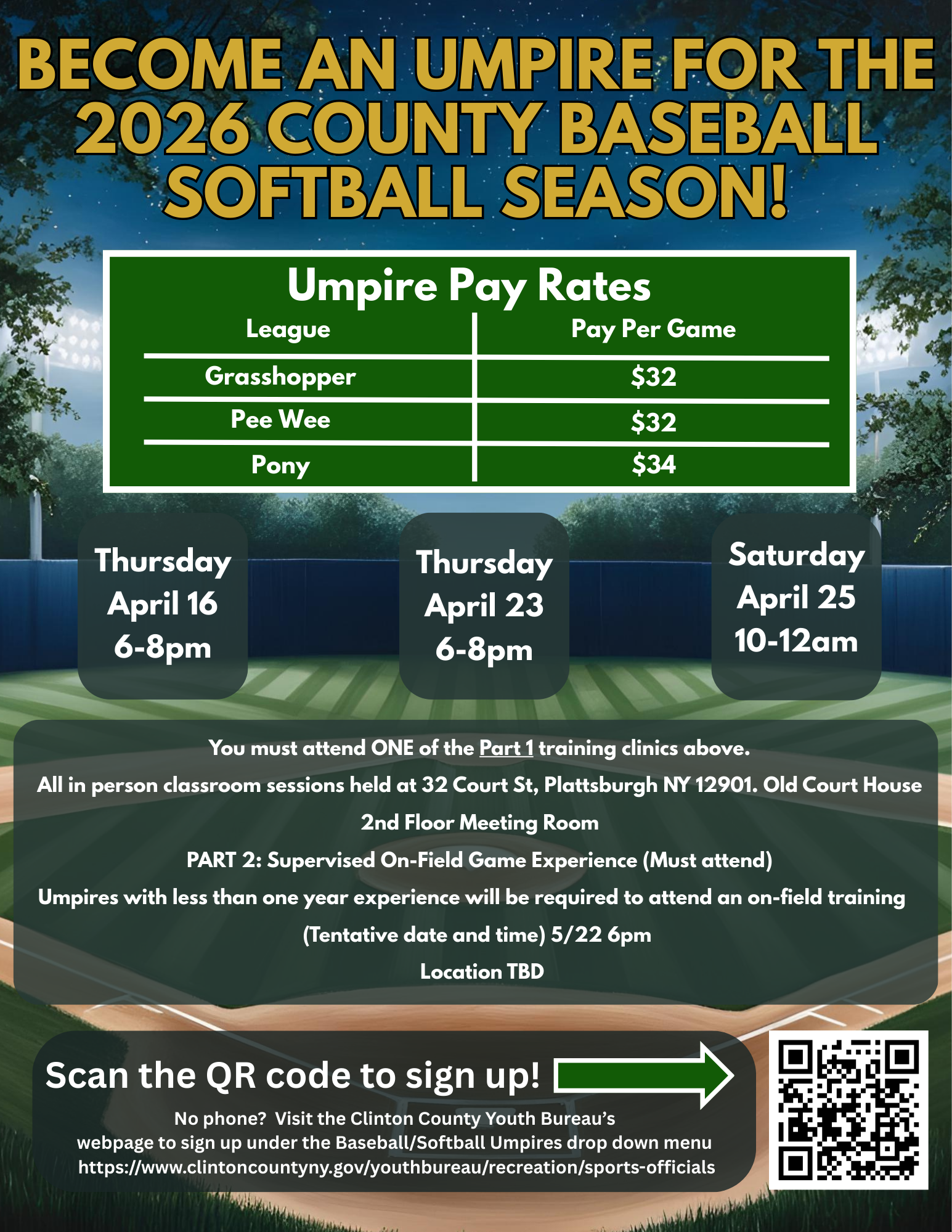 The Clinton County Youth Bureau hires and trains individuals 14 and older to act as Sports Officials for our Youth Sports Leagues. It is the responsibility of each Youth Commissions’ Sports Coordinator to assign officials for their home games from the approved list provided by the Youth Bureau. Sports Officials are in charge of the game, making all decisions and calling all violations. Sports Officials are required to attend the appropriate training sessions for each sport they wish to Officiate.